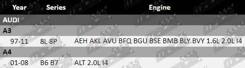 This water pump suits Audi vehicles fitted with the 1.6L and 2.0L I4 engines.